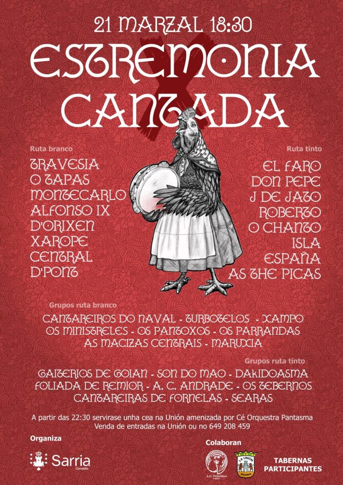 Aberto o prazo, ata o 12 de marzo, para incricións na X edición de Estremonía Cantada, Cantos de Taberna, que celebraremos o 21 de marzo.